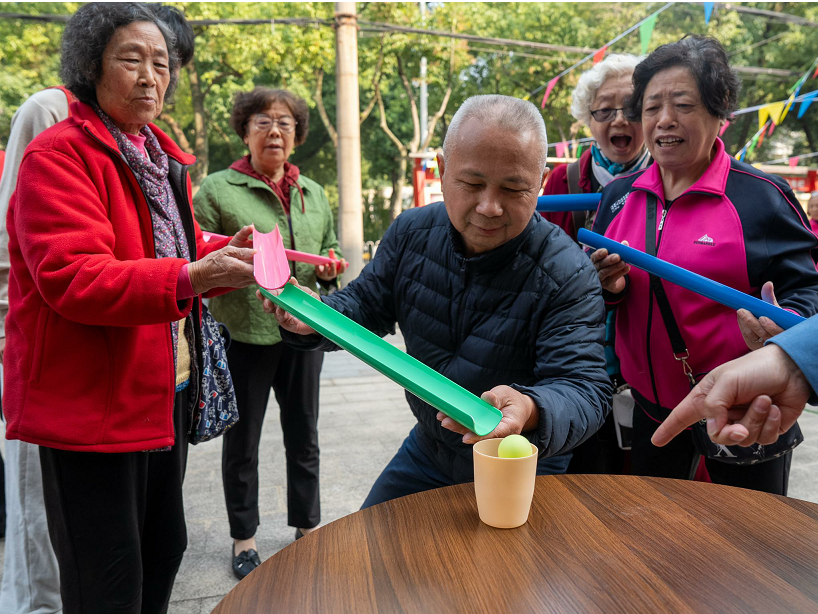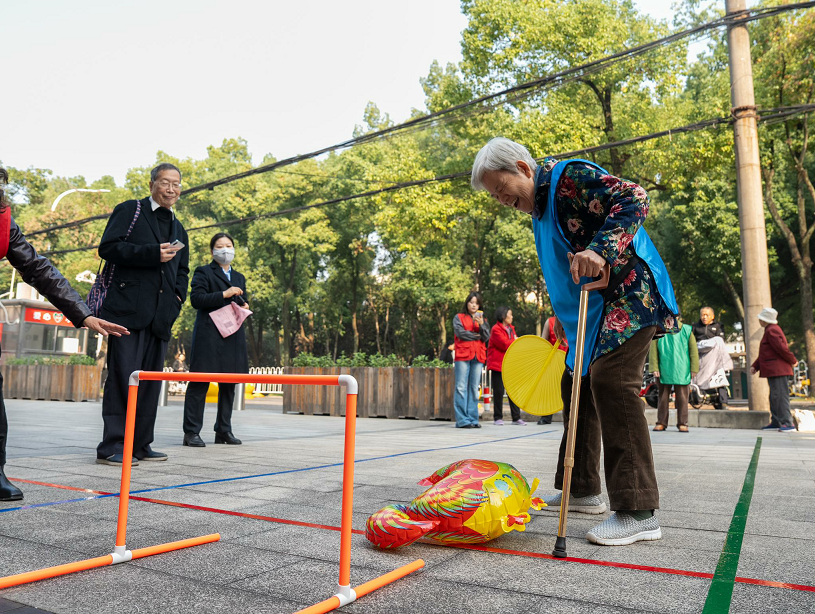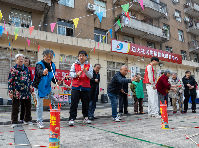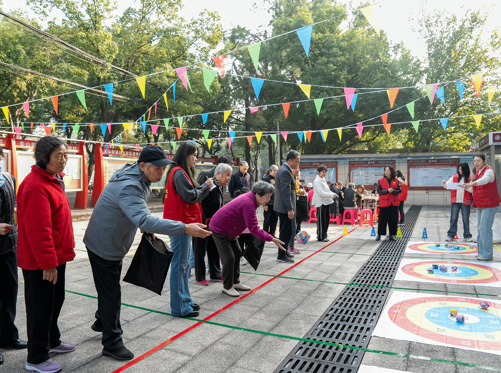 此外,“珠行万里”和“趣味投壶”等游戏也各具特色,既考验团队配合,又展现个人风采,让老年朋友在运动中既锻炼了身体,也享受到游戏的纯粹乐趣。“太有意思了,玩得都不想走!”刚参加完“赶鸡入笼”的张阿姨笑着说道,“社区太有心了,这些游戏特别适合我们老年人!”