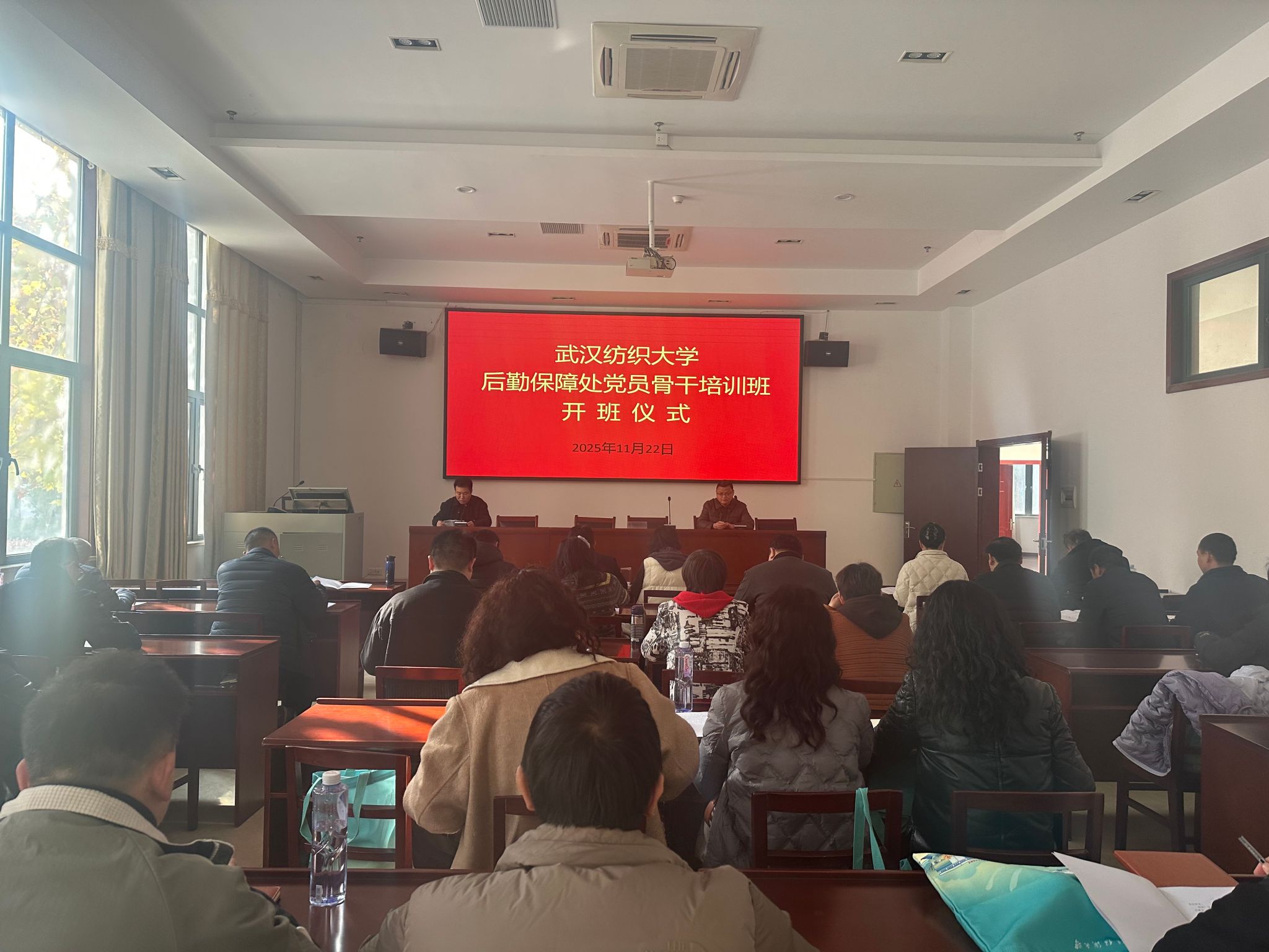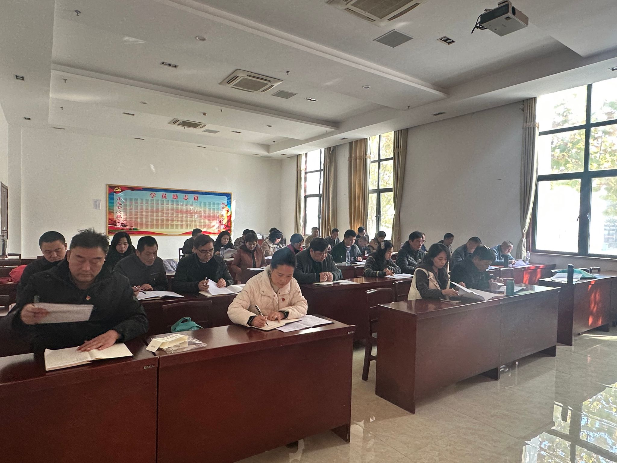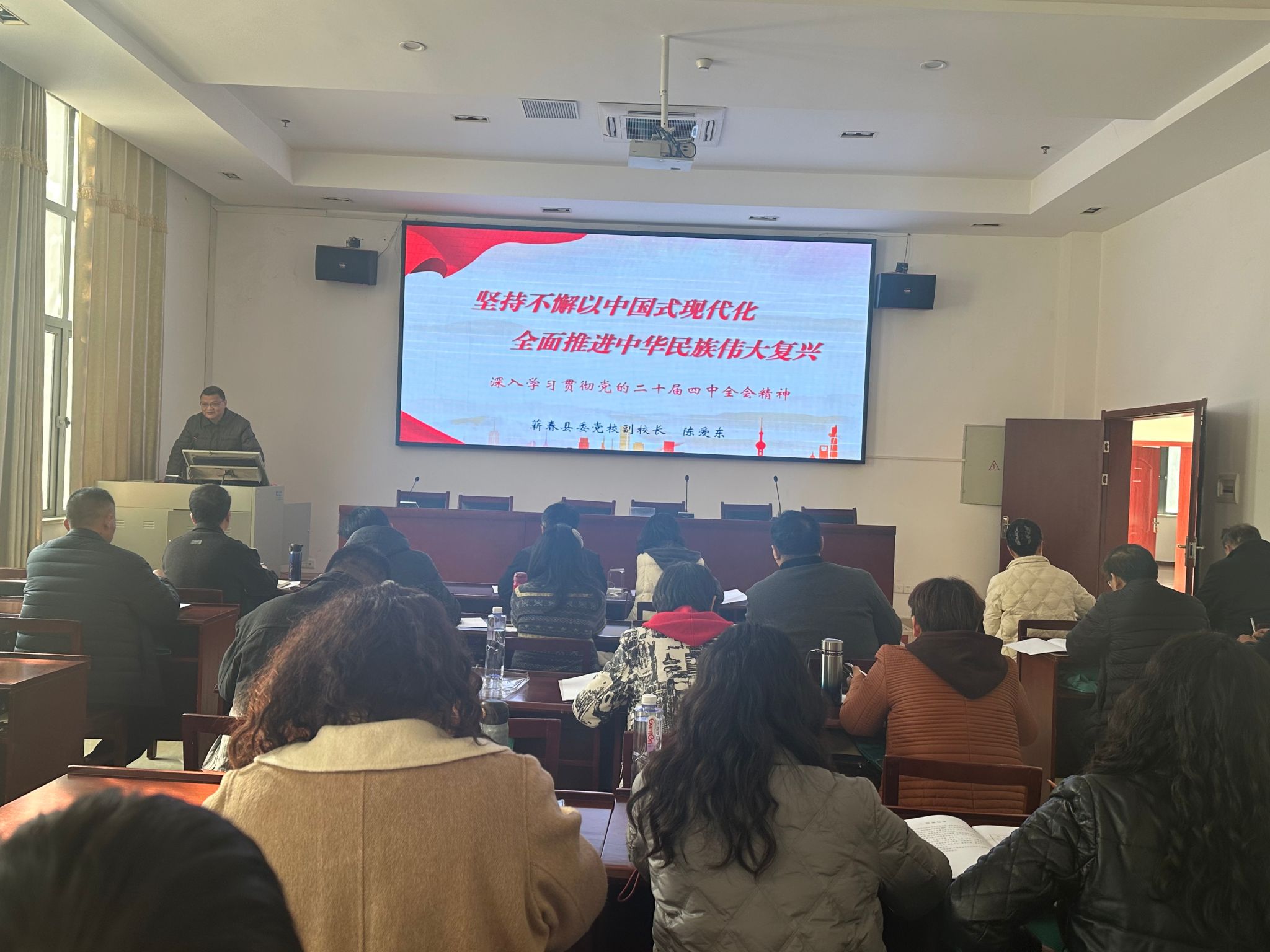 11月22日,风和日暖,后勤保障处组织党员骨干乘车前往中共蕲春县委党校开展以“深入学习贯彻党的二十届四中全会精神”为主题的党员骨干学习培训。