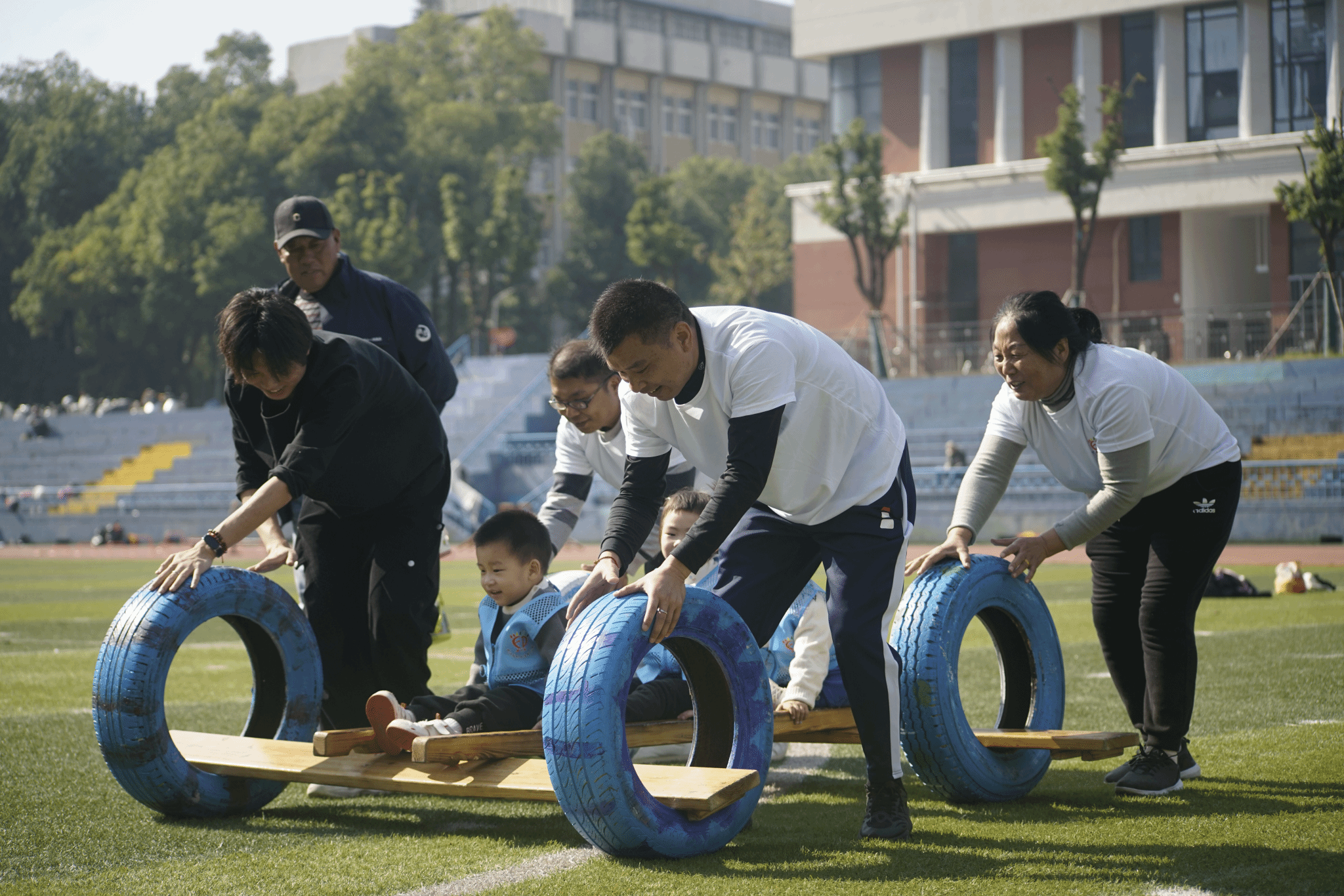 赛场上,不仅有竞争的乐趣,更有亲情的温暖。在入场式表演的亲密互动中、在体育项目中的陪伴和助威中,爸爸宽厚的肩膀、妈妈温柔的笑容,成为了孩子们最坚实的依靠。