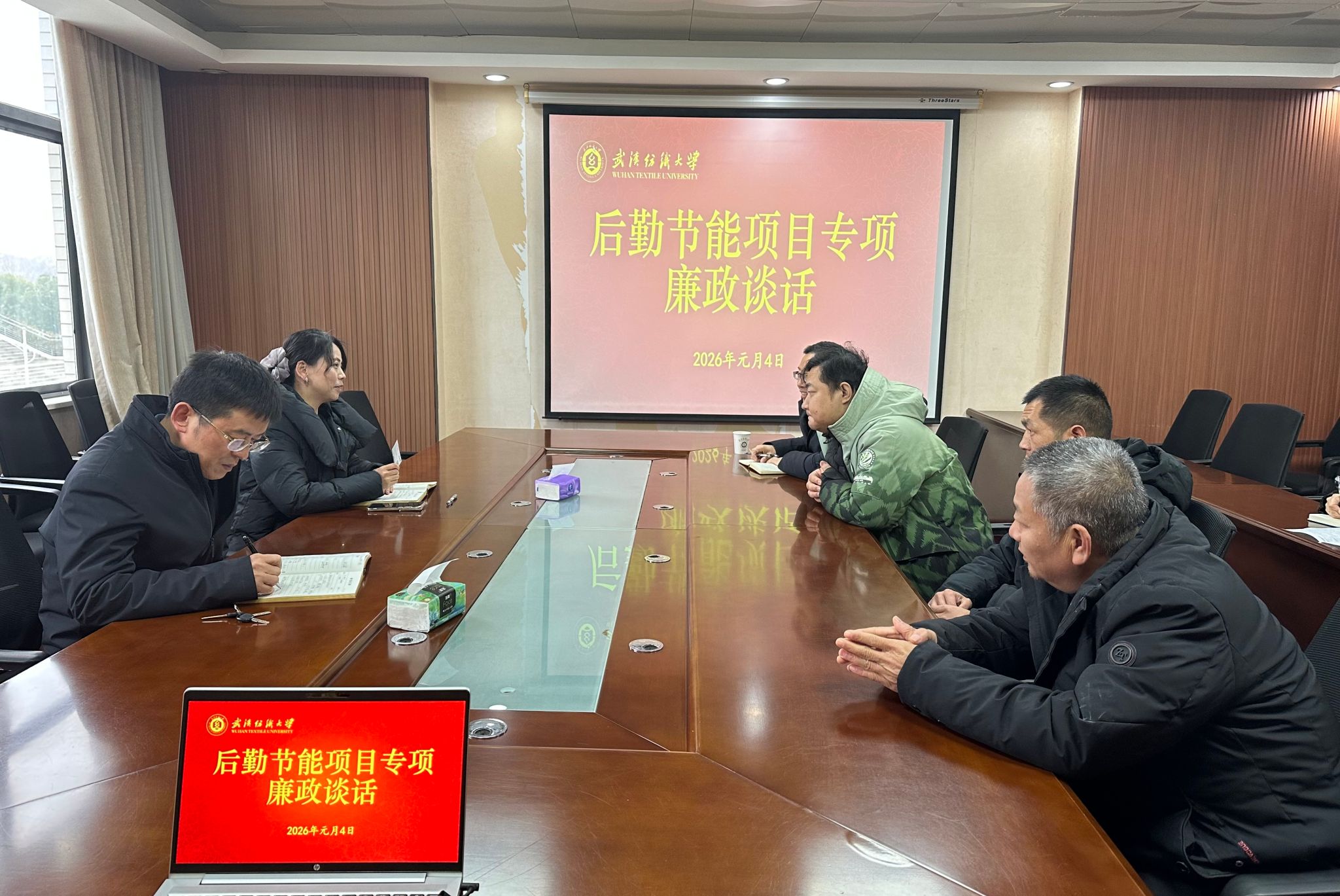 新年伊始,万象更新。在2026年工作全面开展之际,后勤党委于1月4日下午,组织水电管理中心骨干员工和武汉博水信息科技有限公司负责人进行节能项目专项廉政谈话。