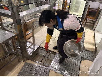 幼儿园特邀专业人员对厨房进行深度清洁与消毒,重点对抽油烟系统、操作台面、储物空间、炊具等进行彻底清理,严格落实食品安全规范,用心守护孩子们“舌尖上的安全”。