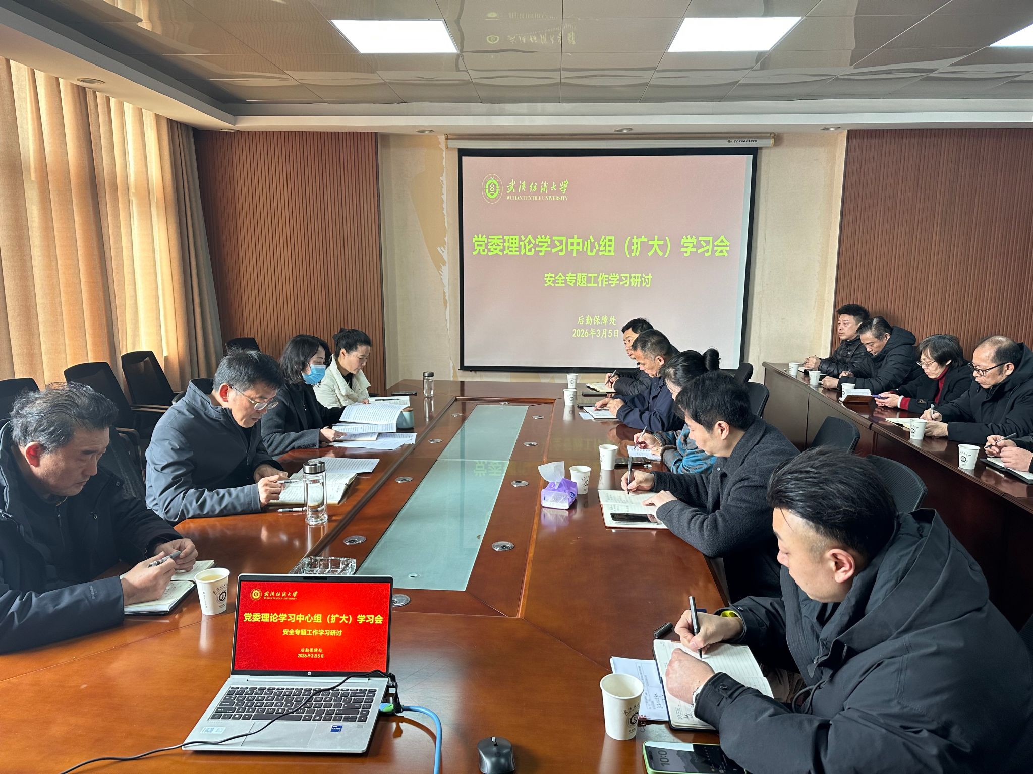 3月5日上午,后勤保障处在后勤楼二楼会议室召开党委理论学习中心组(扩大)学习会。会议旨在深入传达学习学校近期重要会议精神,统一思想、凝聚共识,并进一步强化安全管理和作风建设。后勤领导班子成员、党委委员以及全体中心主任参加学习,会议由后勤保障处党委书记卫冬妹主持。