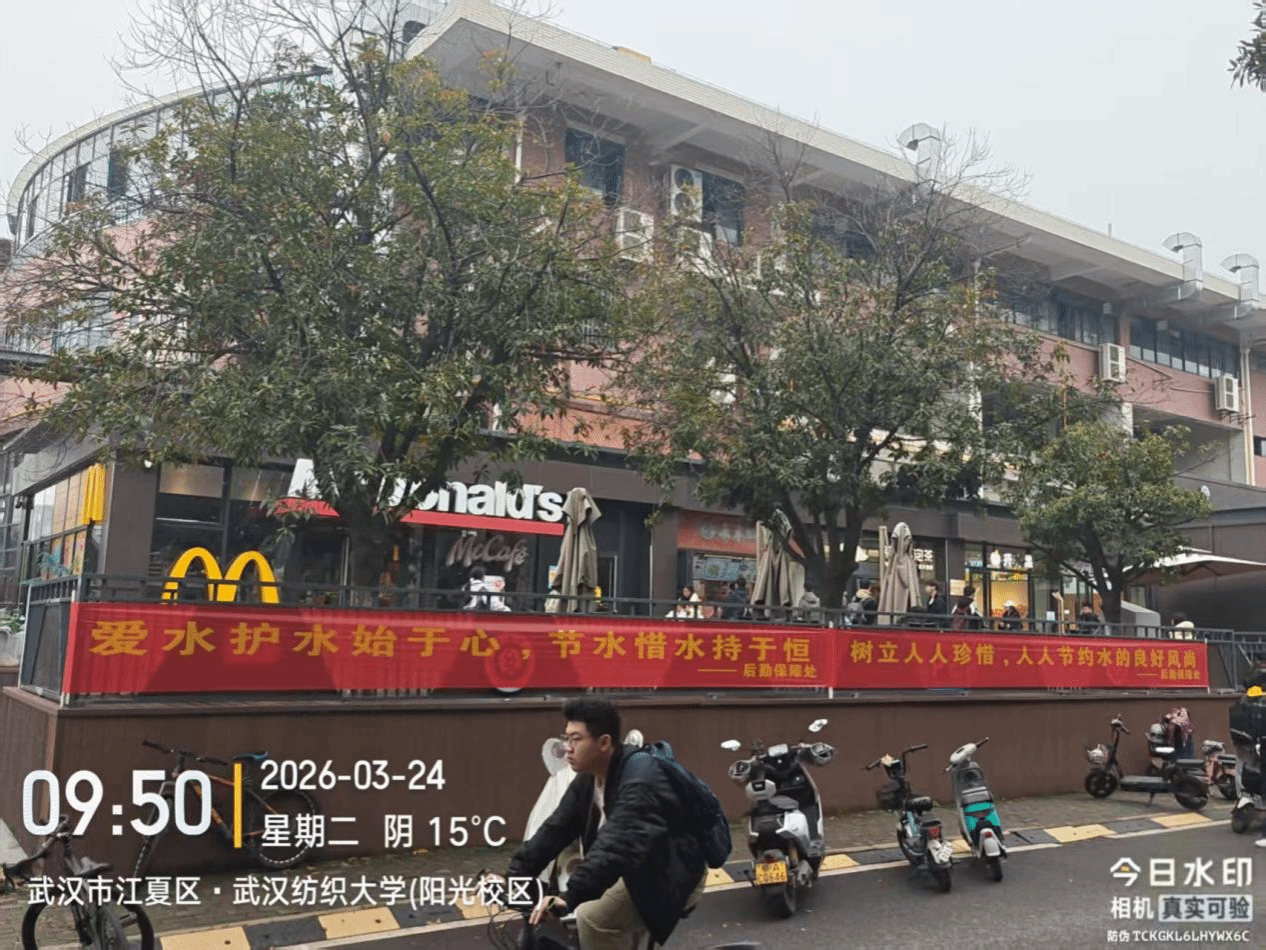 本次宣传通过在校园人流密集区域悬挂节水横幅,以“爱水护水始于心,节水惜水持于恒”“树立人人珍惜、人人节约水的良好风尚”为核心标语,直观传递节水理念,有效扩大宣传覆盖面,引导广大师生自觉养成节约用水、珍惜水资源的良好行为习惯,切实营造“人人懂节水、人人会节水”的校园氛围,为校园节水工作长效开展奠定基础。