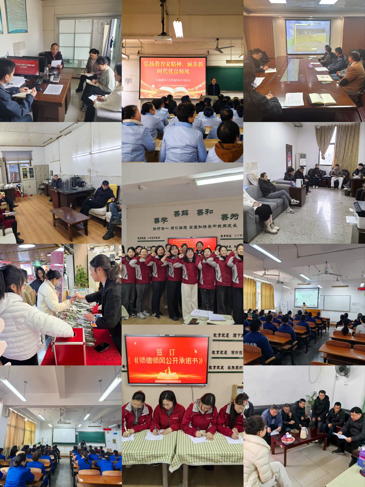 为深入落实学校师德师风建设工作部署,紧扣“弘扬教育家精神,涵养新时代优良师风”主题,3——4月,后勤保障处全面开展师德师风建设月活动,将党建优势转化为后勤师德师风建设的强大动力,确保各项要求内化于心、外化于行。
